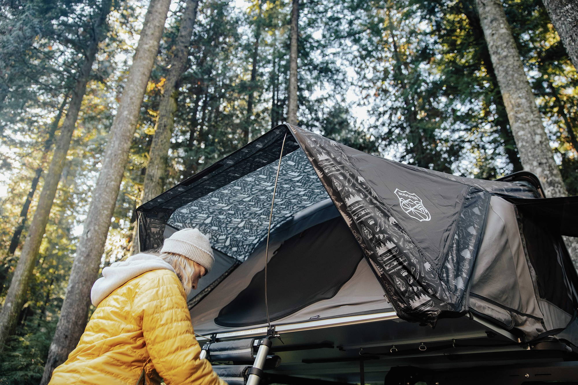 La Skycamp 3.0 Rocky Black avec le double toit Camp Vibes devient l’Édition Limitée Explorer. Une tente de toit prête pour partir à l'aventure, à deux, en famille ou entre amis, avec un style qui ne passe pas inaperçu.