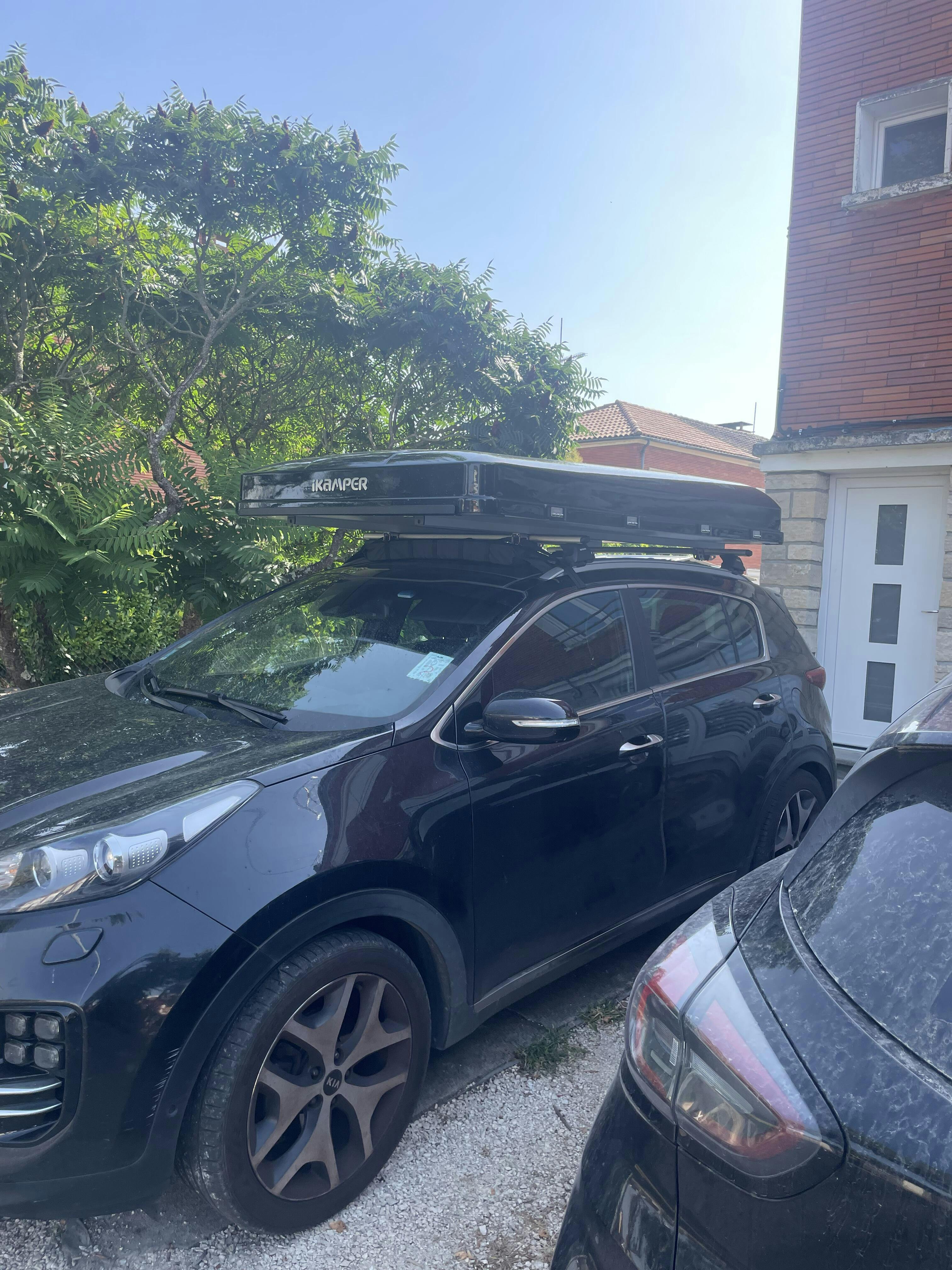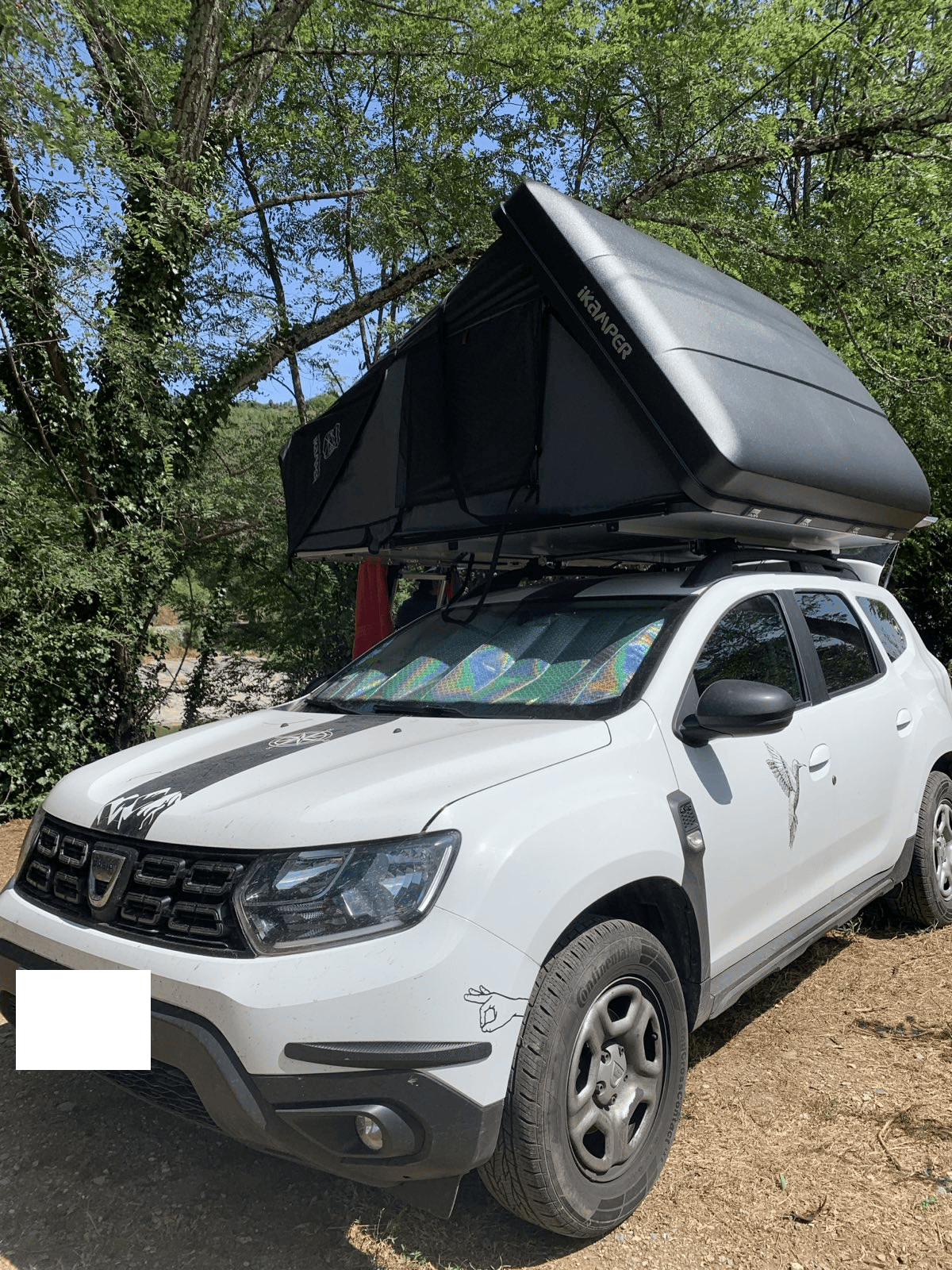 Posée sur un Duster 2021, la hauteur max ne dépasse pas 2m, ce qui est parfait. On y rentre les matelas, sous matelas, 2 oreillers, 2 sacs de couchage et les draps de lit.